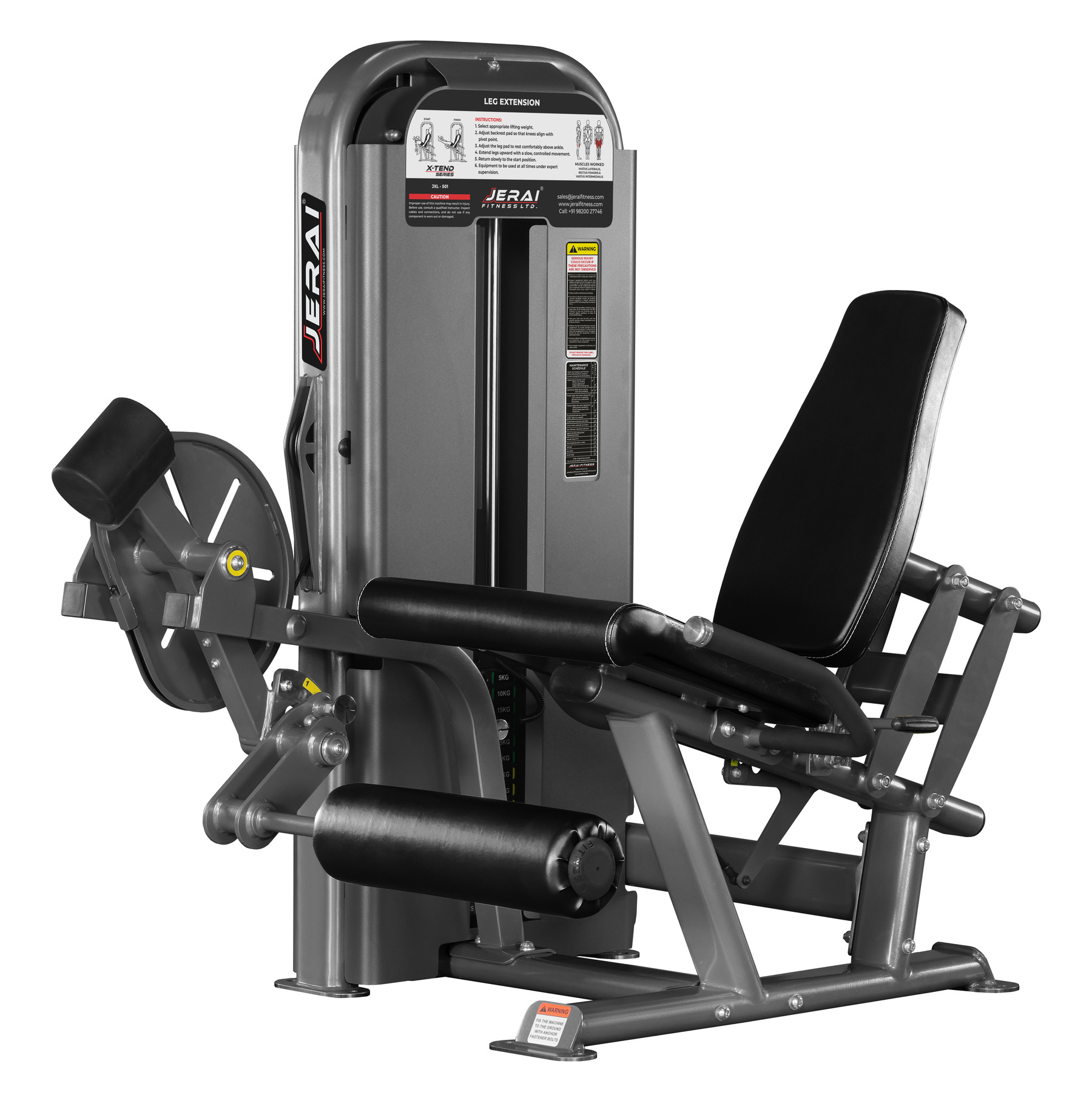 Leg Extension sprava dizajnirana je za maksimalnu izolaciju kvadricepsa uz biomehanički ispravan i kontroliran pokret. Nagnuto sjedalo omogućuje optimalan položaj tijela i bolju aktivaciju mišića, dok su osovine rotacije precizno usklađene s koljenima kako bi se osigurao prirodan i siguran pokret. Podesivi valjci za noge prilagođavaju se različitim duljinama nogu, omogućujući individualno podešavanje za svakog korisnika. Ergonomski dizajn smanjuje opterećenje na zglobove i povećava učinkovitost treninga. Robusna konstrukcija i kvalitetni materijali jamče dugotrajnost, stabilnost i sigurnost, što ovu spravu čini idealnim izborom za profesionalne i komercijalne fitness centre.